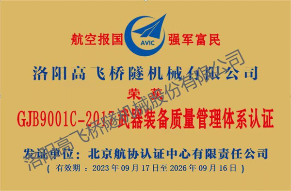 武器裝備質(zhì)量管理體系認證證書